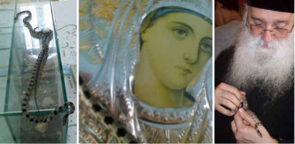 კუნძული კეფალონია, რომელიც იონიის ზღვაში მდებარეობს, მარტო იმით არაა გამორჩეული, რომ ერთ-ერთი ყველაზე დიდი კუნძულია ამ ზღვაში. სწორედ ამ კუნძულზე, ყოვლადწმინდა ქალწულ მარიამის მიძინების დღეს, ყოველწლიურად აღესრულება სასწაული, რომელიც მნახველებს ანცვიფრებს – სოფელ მარკო პოლოში, ღვთისმშობლის მიძინების სამლოცველოში, დღესასწაულზე დასასწრებად და ხატის თაყვანის საცემად ტაძარში… შხამიანი გველები მოდიან. ხატს “გველის ღვთისმშობელს” უწოდებენ.