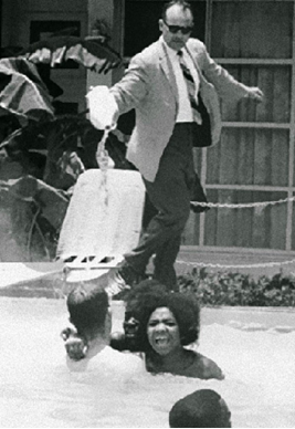1964 წელი ამერიკა, სასტუმროს მენეჯერი აუზში ჩასულ ფერადკანიან ადამიანებს მჟავას ასხამს.