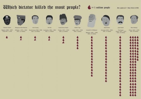 დიქტატორების რეიტინგი დახოცილი ადამიანების რაოდენობის მიხედვით.