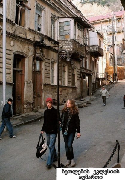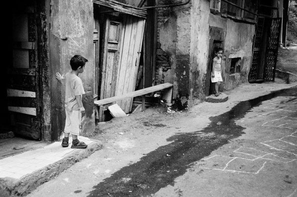 ქუჩებში (და არამარტო ქუჩებში) ფოტოგრაფია ჩემთვის ნადირობასავითაა – რომელიმე ქუჩის მონაკვეთი თუ მომეწონება, ვარჩევ გადასაღებ კუთხეს, რომ კომპოზიციურად გამართული იყოს და ველოდები ქუჩის გამვლელს და თუ ვინმე საინტერესოდ თუ მომეჩვენა – „ჩხაკ“ და ვიღებ (საერთოდ ჩემი ფოტოების 99 პროცენტი მოულოდნელია – ე.წ. პაპარაცული). რაც შეეხება, ამ ფოტოს – უცბად დავინახე ეს ბავშვები რომ უყურებდნენ ერთმანეთს და საუბრობდნენ- მაშინვე გადავიღე და აპარატის „გაჩხაკუნება“ რომ გაიგონეს სადარბაზოში შეცვივდნენ.“