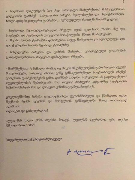 საქართველოს კათოლიკოს-პატრიარქი ილია მეორე მრევლისადმი საგანგებო მიმართვას ავრცელებს.