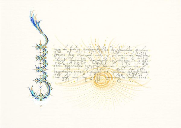 ამ მოხაზულობათა გამაოგნებელ ესთეტიკურობას თუ თავს დავანებებთ, ჩვენ შეგვეძლება, ჩავიღვაროთ უდიდესი ინფორმაციისა და საკრალური ცოდნის მორევში. ის, რაც ამ დამწერლობასა და მათ სემანტიკაში დევს, სცდება უბრალოდ მოხაზულობათა ნაირფეროვნებასა თუ ინდივიდურ სახებებს. მთელი ქართული ანბანი, თავისი მოხაზულობით, მზისა და მთვარის ფაზების მოხაზულობებს შეესატყვისება, რომელნიც შერწყმულ-შეკავშირებულნი არიან ერთმანეთთან ვერტიკალებისა თუ ჰორიზონტალური სხივისებრი ხაზებით – დამწერლობის 3 სახეობა, რომელიც დროსა და სახეცვალებადობასთან ერთად გარდაიქმნებოდა და ერთმანეთიდან გამოვლინდებოდა. ყოველი სიმბოლო, რომელსაც თავისი რიცხვითი მნიშვნელობა აქვს 1-დან 10 000 -ის ჩათვლით არის კაბალურ სამყაროში იმ უდიდეს მისტერიული კარის გასაღები, რაზე საუბარიც დიდ სალექციო კურსს მოიცავს. რთულია, ორი სიტყვით აღწერო და დაახასიათო უსასრულობა. ჩემთვის ქართული ანბანი სწორედ რომ უსასრულობაა თავისი სამყაროსეული მაშტაბებითა და ამოუხსნელი საიდუმლოებებით – იმ სემანტიკით, რაც მასშია მოქცეული, რაც ჩანს და  რაც არ ჩანს…