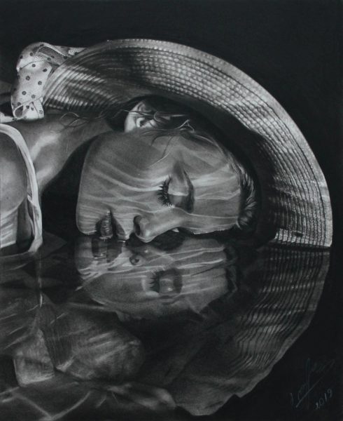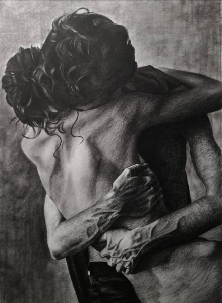 პირველ ეტაპზე, ვეძებ საინტერესო ფოტოებს, შემდეგ უკვე კეთდება მონახაზები და იწყება ყველა დეტალის თანდათანობით ნახშირით დამუშავება