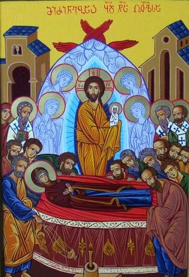 ყოვლადწმინდა ღვთისმშობელი მოციქულებმაგეთსამანიის ქვაბულში დაკრძალეს. მესამე დღესმოციქულებმა ქვაბულის ლებმა ლოდი გადააგორესდა აღმოაჩინეს, რომ ღვთისმშობელი უფალმამკვდრეთით აღადგინა და ხორცით ზეცაშიაღამაღლა. ამიტომ ეკლესია ღვთისმშობლისაღსასრულს მიძინებას უწოდებს.