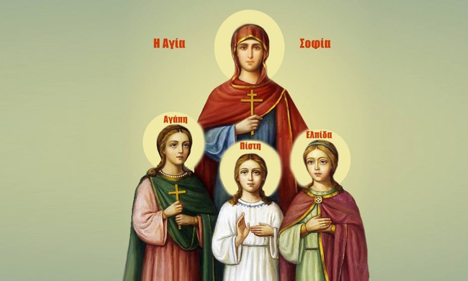 წმინდა სოფიო შვილებით: პისტი, ელპიდი და აღაპი მათი სახელები ქართულად ითარგმნება – რწმენა, იმედი და სიყვარული.