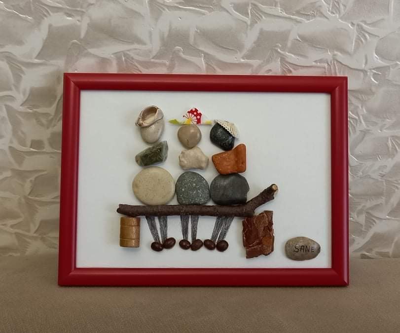 ვაგროვებ სხვადასხვა ფორმის, ზომის და ფერის კენჭებს. მომაქვს, ვწმენდ ქვის საწმენდი სპეციალური სითხით, ვაშრობ, შემდეგ მუყაოზე ვაწყობ იდეის მიხედვით, ვაწებებ სპეციალური – ქვის წებოთი, საბოლოოდ, ვუსვამ ლაქვს, რათა ფერი უფრო მკვეთრად დაჯდეს და უფრო ეფექტური გახდეს.