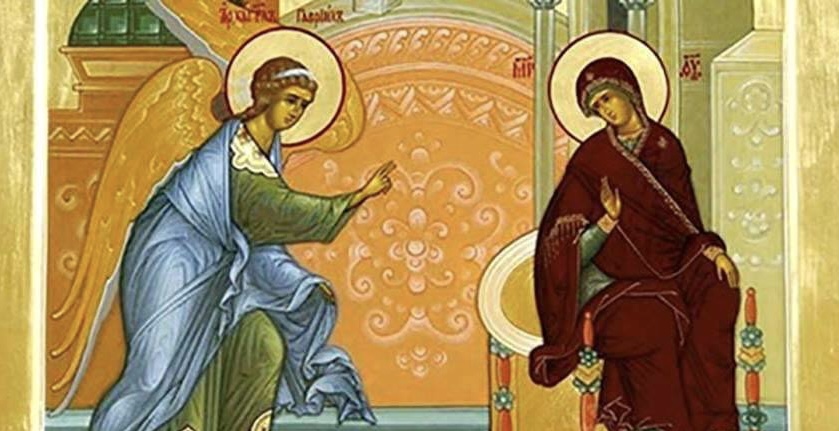 წმინდა წერილის თანახმად, გაბრიელ მთავარანგელოზი ქალწულ მარიამს გამოეცხადა და ახარა, რომ ის ძეს ღვთისას შობდა და ამით ის ძე კაცისა გახდებოდა. მარიამმა ანგელოს მიუო: „აჰა მხევალი ვარ უფლისა, მეყოს შენი სიტყვისამებრ“.