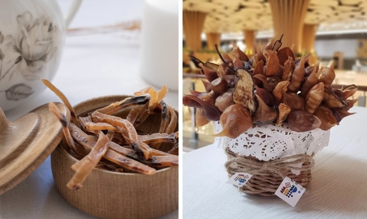 - ლეჩხუმის შავი ქლიავი რაჭული ნიგვზით, საფერავის ქიშმიში და ნუშით, გარგარი ნუშით.