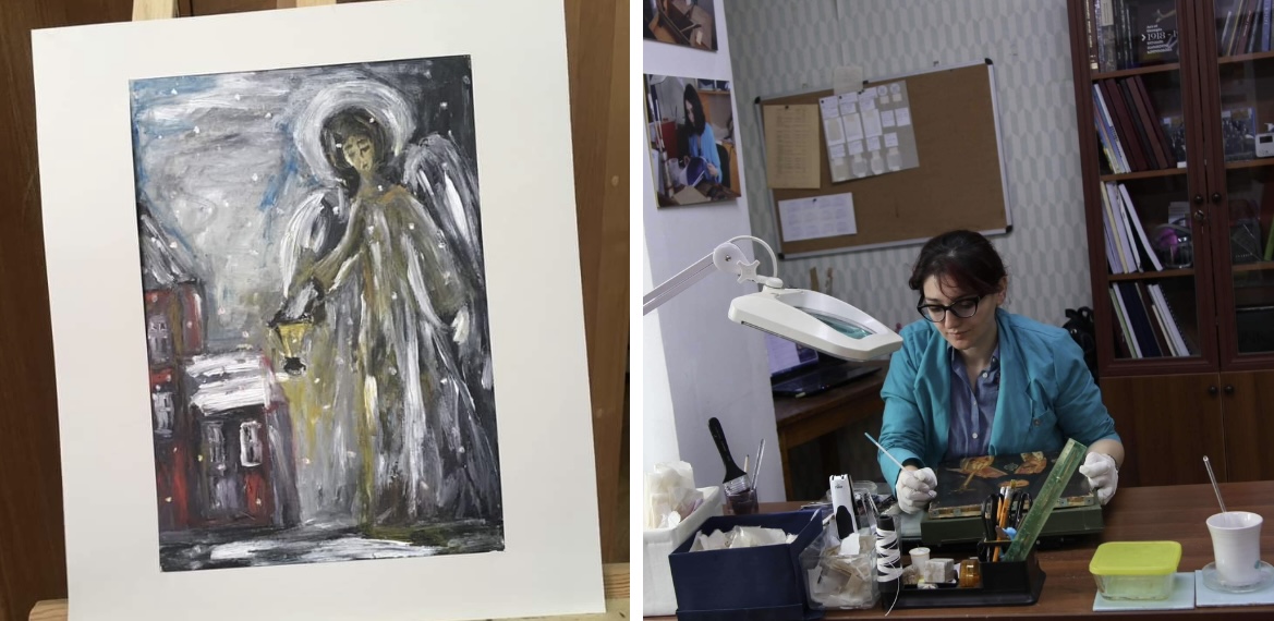 ჩემი დღის დიდი ნაწილი ამ ეტაპზე წიგნის რესტავრაციას უჭირავს, ეს ჩემთვის იგივე ხელოვნებაა. სწრაფი ნაბიჯით მივდივარ სამსახურში, ვჯდები და ვიწყებ მაგალითად 1709 წლის ,,სახარები“-ს რესტავრაციას, წიგნის – რომელიც საქართველოში 1709 წელს, ვახტანგ მეექვსის მიერ მოწყობილ პირველ სტამბაში დაიბეჭდა. რესტავრაციას/კონსერვაციას ვუტარებ ჩემს გუნდთან ერთად კულტურული მემკვიდრეობის უძვირფასეს ნიმუშებს, რომლებიც ქართული ბეჭდური ხელოვნების უმაღლეს საფეხურზე დგას.