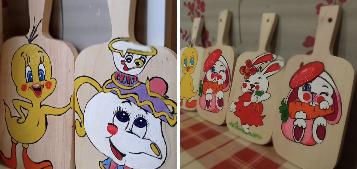 „ვთანაშმრომლობ იმერეთის ერთ-ერთ სოფელში მცხოვრებ დურგალთან, ჩამომაქვს სამზარეულოს ხის დაფები და ამ დაფებზე ხელით ვხატავ ანიმაციურ პერსონაჟებს. საქართველოში მსგავს პროდუქციას რამდენიმე მეწარმე ქმნის, ყველა მათგანის შრომა ნამდვილად დასაფასებელია. ჩემი მხრივ, მე ვცდილობ, ,,დაფიონებში“ მკვეთრად იყოს გამოხატული ფერადი და სახალისო განწყობა და ამ ყველაფერს თან ახლდეს იუმორი – პოსტების ან ვიდეორგოლების სახით“.