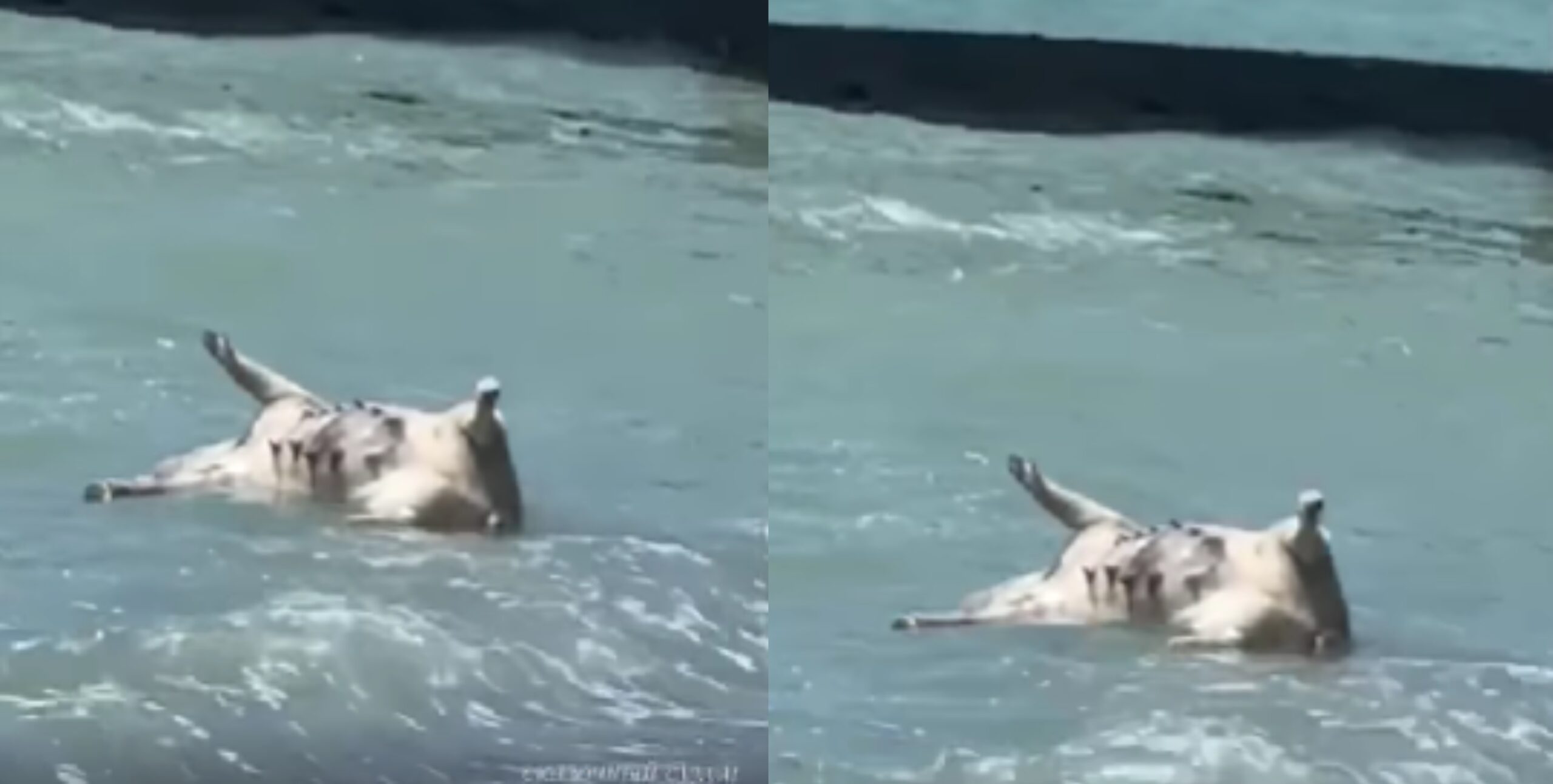 ეკოლოგიური კატასტროფა შავ ზღვაში – რუსი ოკუპანტების მიერ კახოვკის ჰესის აფეთქების შემდეგ ოკუპირებული სოხუმის სანაპიროზე, ზღვამ დახოცილი ცხოველების ლეში გამორიყა.