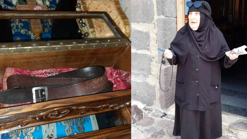 მიჰყავს მამა გაბრიელის სიწმინდეებთან – მის მირონმდინარე ხატთან და სარტყელთან.