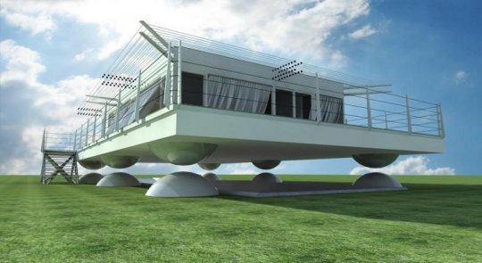 სახლს, რომელიც კომპანია Air Danshin Systems Inc-მა შექმნა სპეციალური სენსორები უყენია, რომელიც მგრძნობიარეა მიწისძვრის შემთხვევაში, სახლი როგორც კი შეირყევა, ავტომატურად ირთვება ფუნდამენტში დამონტაჟებული მძლავრი კომპრესორები, რომლებიც ჰაერის ნაკადს აწვდის აირ ბალიშებს, სახლი რამდენიმე სანტიმეტრით იწევა ჰაერში, როგორც კი სეისმური აქტივობა დასრულდება, სახლი უბრუნდება ფუნდამენს სრული პარამეტრებით.