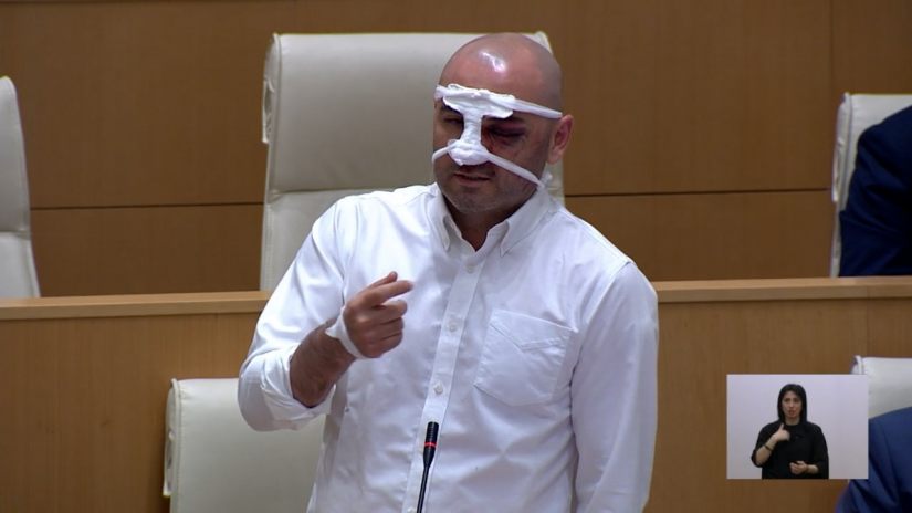 „ნაციონალური მოძრაობის“ თავმჯდომარემ, ლევან ხაბეიშვილმა პლენარულ სხდომაზე რობოკოპების მიერ, მისი ცემის შესახებ ისაუბრა: