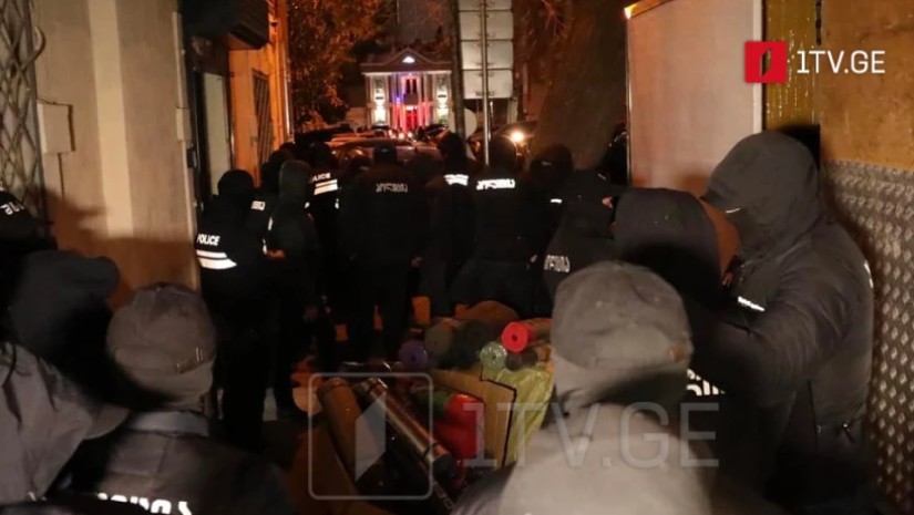 სამართალდამცველებს „დროას“ ოფისიდან საპროტესტო აქციებზე გამოსაყენებელი სხვადასხვა ნივთი გააქვთ.