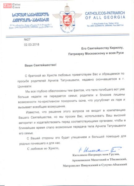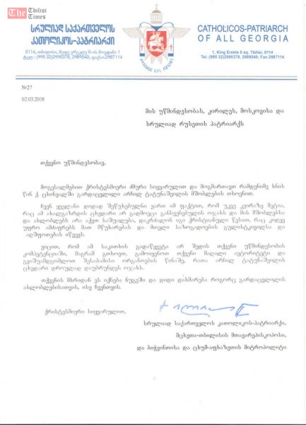 შექმნილი მძიმე მდგომარეობის გამო სრულიად საქართველოს კათოლიკოს-პატრიარქმა წერილი გაუგზავნა რუსეთის ეკლესიის მეთაურს.